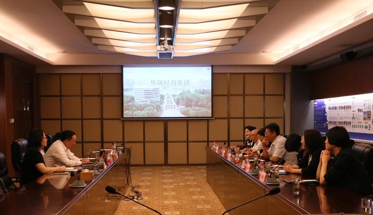 康宜华向与会人员介绍了江苏华瑞时尚集团产业布局及近年来取得的成就,阐述了当前的公司战略定位理念,即用现代科技改造武装传统产业,做到知变、应变、善变、求变,顺势而为,实现转型升级、创新发展。康宜华提出校企深度合作,就产品设计、电商运营、内容营销等合作提出建议。