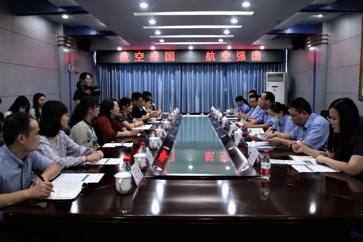 团队前往中国飞机强度研究所(简称强度所)参观交流。强度所纪委书记、党委副书记马爱芳,党群工作部书记谢佳卉,人力资源部副部长何冀婷,党群工作部宣传干事王立群出席座谈会。