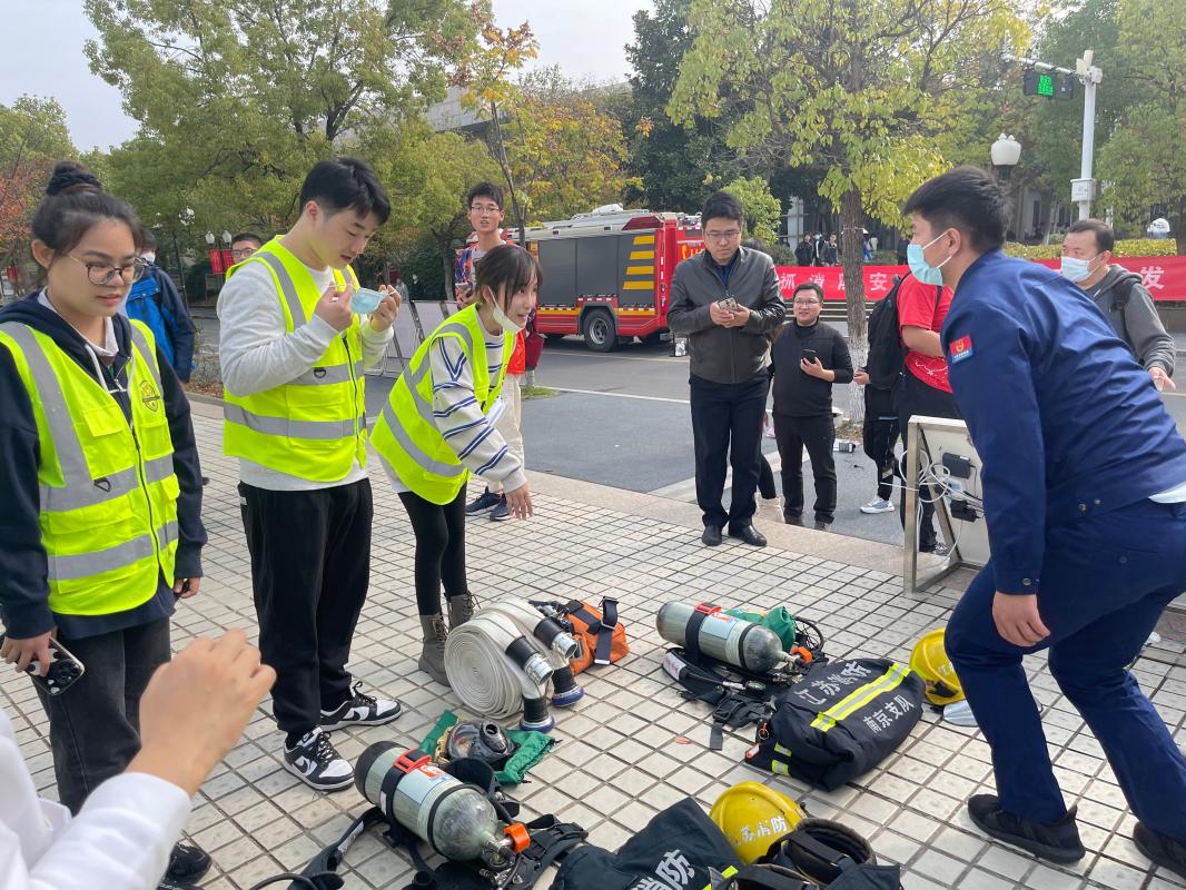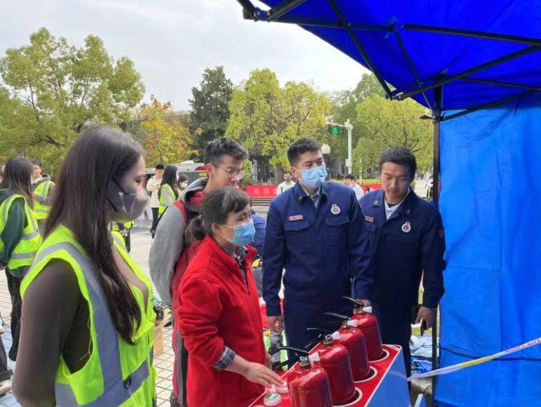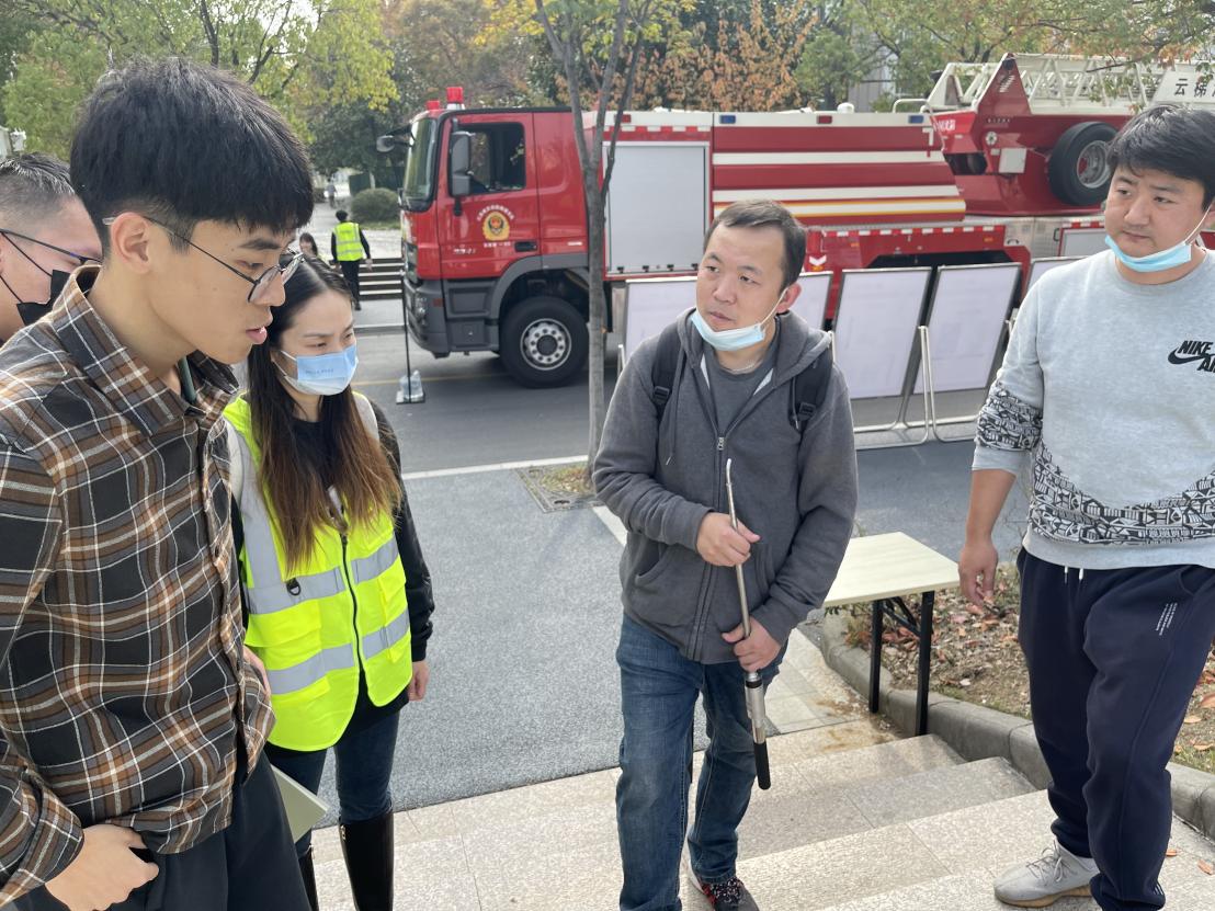 随后,音乐学成人电影 党支部同学到达各自工作地点协助保卫处党支部为在校学子讲解消防安全知识,并引导路过的师生参加“模拟灭火”、“模拟逃生体验”、“消防云梯体验”等消防小游戏。