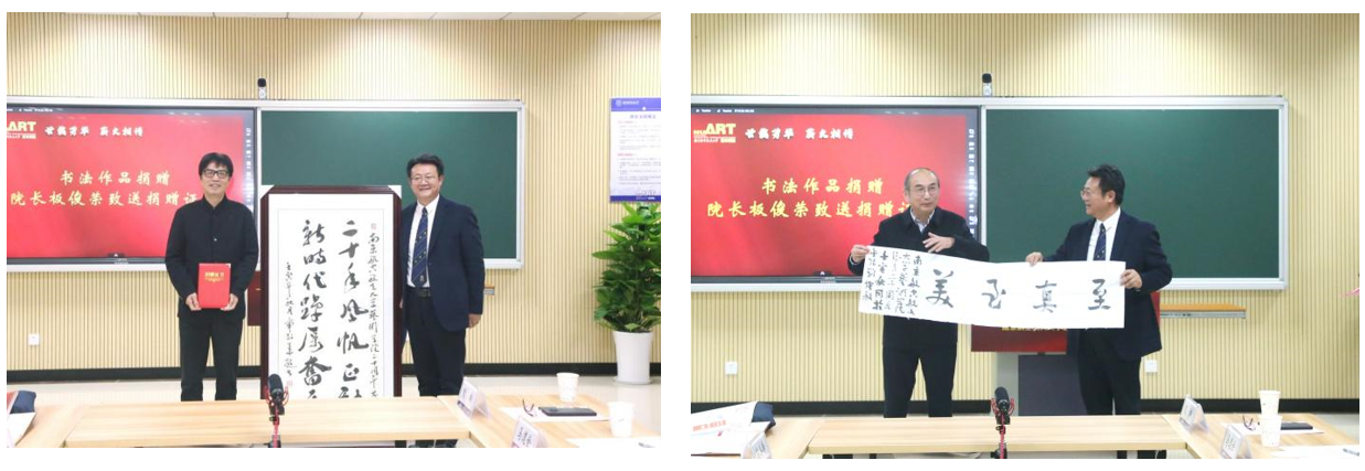 两位教授还向成人电影 捐赠了自己的书法作品,板俊荣代表成人电影 向两位教授赠送了捐赠证书。