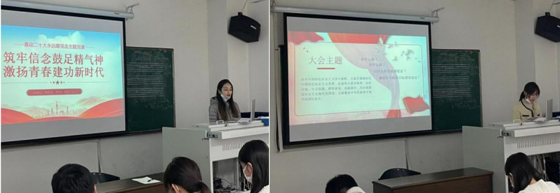 会上,支部组宣委员李昕晨同志进行了“喜迎二十大,永远跟党走”主题党课宣讲。李昕晨从专业出发,通过采取小角度切入,以小见大,多角度论证,深刻阐述了支部开展系列主题学习党课的重要意义。肖刘同志与侯一飞同志共同领学了党的二十大报告精神内涵,并根据大会精神,以我校七十周年校庆活动的开展为契机,提出支部未来工作展望。