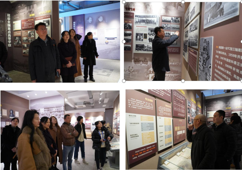 理论学习中心组全体成员首先来到校史馆,重温了南航发展的峥嵘岁月和光辉历程。通过观看校史馆馆藏中丰富的图片、文字、物品和影像资料,中心组成员们全方位回顾了建校70多年来,学校在党建引领、人才培养、成人电影 教学、社会服务、文化传承等方面所取得的不平凡的业绩,探寻到艺术因南航而生,伴南航成长的发展轨迹,增强了对南航精神及强化特色厚植发展优势的理解,坚定了艺术融入三航特色,融入发展大局的信心和决心。