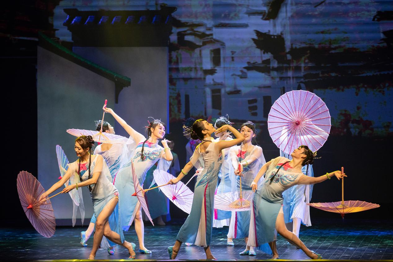 本次演出在南航原创舞蹈《逐梦云天外》中拉开序幕,展现了中国航空航天人用心血和汗水铸造飞天的翅膀,逐梦在无垠苍穹的精神。之后以鸣夏、瑟秋、凛冬、融春四个篇章逐渐展开。双人舞《同行》演绎了行军路上的感人故事;独舞《倾城》中的藏族姑娘迎着朝阳舞起裙衫,掀起了漫山遍野的花海;群舞《那年剪短发》讲述了一群女子,面对亲人离散、家园失守,毅然地决然剪去长发走上战场,用自己的方式与命运抗争,实现了生命的蜕变,迎来新的希望;独舞《庭院深深》取材于著名画家陈逸飞的作品《浔阳遗韵》,塑造了深闺女子的愁苦与挣扎;现代舞《不在》讲述孤单与爱的故事;舞剧《永不消逝的电波》选段以李白等地下工作者烈士为原型,展现了革命先烈面对生死抉择时的爱与信念;独舞《点绛唇》以一把椅一面镜营造了意蕴悠长的古典气息;含蓄典雅的群舞《小城雨巷》则把观众带入了薄雾细雨、青砖黛瓦的江南水乡。演出的尾声,导师杨莉莉教授带领着三位成人电影 共同跳起舞蹈《茉莉花》,深深鞠躬致谢,现场每一位观众无不动容。
