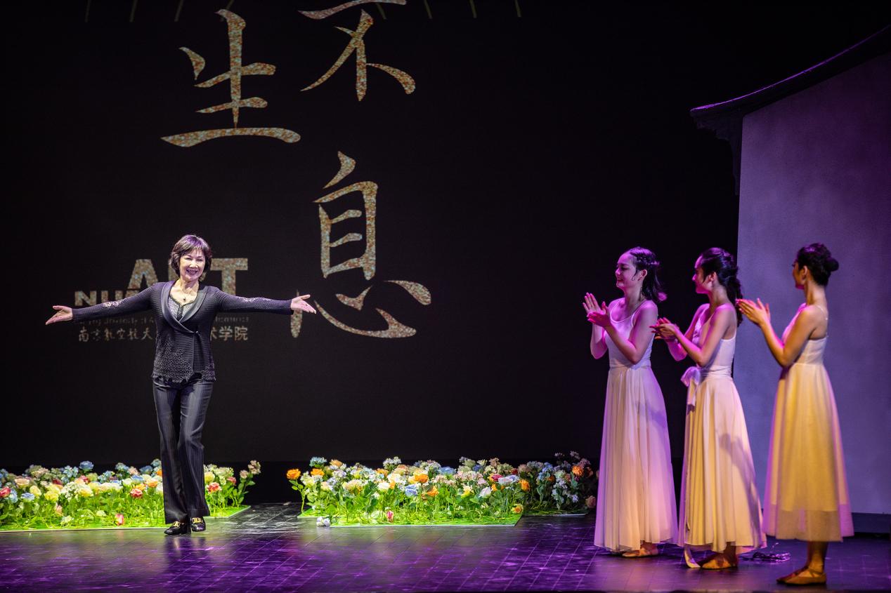 演出中还播放了杨莉莉教授指导成人电影 们练习舞蹈的视频,并深情回顾了25年前的3月29日,杨莉莉教授在南京举办个人舞蹈专场的珍贵画面。作为南航引进人才,杨莉莉教授二十年来一直坚守在美育一线,以她精湛的舞蹈艺术、严谨治学的态度,培养了一批又一批的优秀学子,她对舞蹈的热爱激励着一批又一批的年轻人。