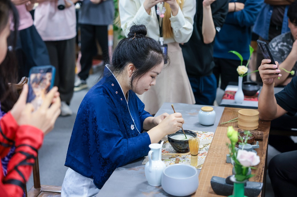 列具、炙茶、碾茶、罗茶、烧水、熁盏、置茶、候汤、调膏、点汤击拂、鉴赏汤花、闻香尝味。余辉老师现场为留成人电影 们表演点茶,用执壶往茶盏点水时,有节制,落点准,茶面均匀完整。点茶总共要注水七次,使茶末与水交融,动作虽然看起来差不多,但里面可大有乾坤,郭园老师从专业的角度进行讲解:“一汤是‘一念生、珠玑蕴色、流彩含羞’,二汤的时候,‘再思量、粟米粒粒、翠涛松声’,打击的速度要快要有力,这样泡沫才能如珍珠般……“