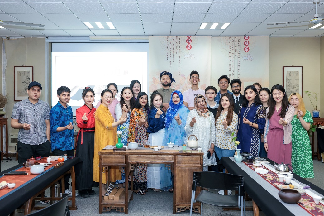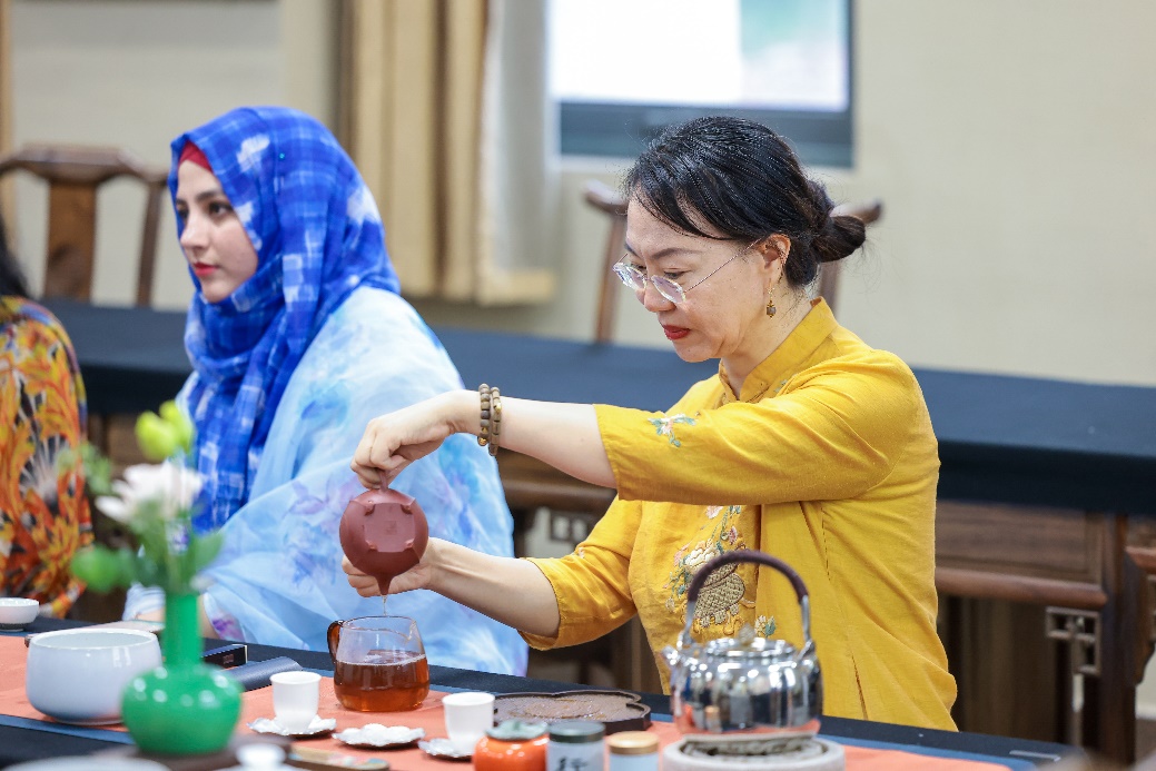 来自墨西哥的Luna说:“今天的课程非常有趣,我们学到了很多关于中国茶的知识,以及各种喝茶的礼仪,伸掌礼、叩手礼、鞠躬礼,真实地体验了一次“礼仪之邦”。我最喜欢的是老师耐心细致的讲解和指导,亲自为我们小组演示如何泡茶品茶,并给我们微笑和鼓励,让我们在快乐中体验,收获满满。”