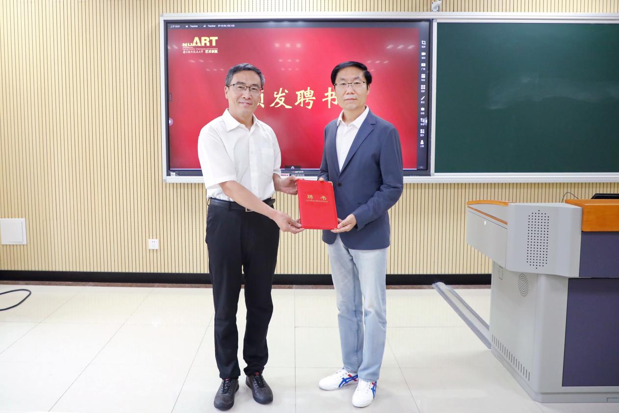 在热烈的掌声中,崔海涛向李占军教授颁发聘书。王晖为李占军教授佩戴校徽。