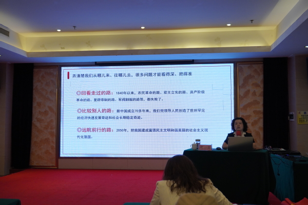 开班仪式结束后,教师们认真聆听了遵义市委党校文史教研部主任袁小英所主讲的专题党课《习近平新时代中国特色社会主义思想》。
