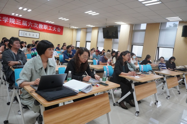 院长板俊荣传达了学校2023年下半年干部教师大会的精神,并围绕新一轮岗位聘任工作、学科发展与建设情况、上半年教学科研及人事工作进展、天目湖校区教学空间与设施调研工作等,做了详细的工作报告。