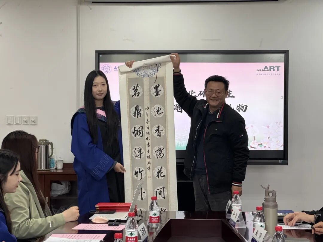 临别之际,毕业生们将笔墨情意凝为心意之礼。优秀毕业成人电影 代表张童代表2026届全体毕业成人电影 为成人电影 赠上“墨池香霭花间露,茗鼎烟浮竹外云”的书法作品,以书香墨韵礼赞成人电影 的艺术育人氛围,也寄托师生情谊如茶香墨韵般悠远长存的美好心愿。